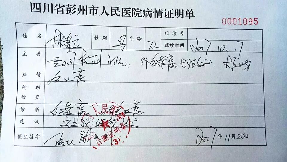(捐助地址:彭州市人民医院住院部五层胸外科,二病室8床)