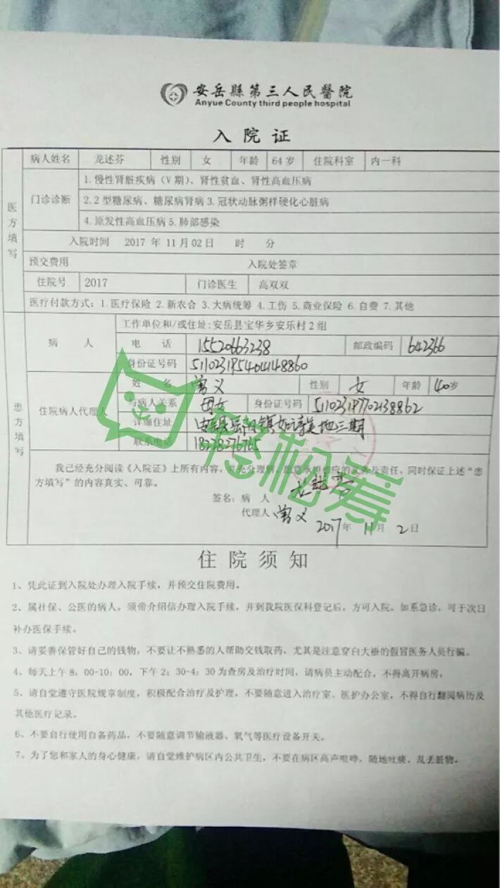 公司员工曾兵的母亲,经检查患上了尿毒症,在04年被诊断出糖尿病和高血压,因血糖、肌酐和各项指标严重超高,引起了很多并发症,内脏器官很多功能已受损,每月要做8次透析冶疗,终身都要做透析冶疗。曾兵父亲2006年也患肺肿瘤,肺部分切除,高血压和支气管炎,长年也是药物不断。这些对于一个普通农村家庭如睛天霹雳,持续的治疗还需大量的药费。公司得知此事后第一时间进行了关怀,并送去5000元爱心基金进行帮扶,另一方面,公司高层带头对其进行“众筹”援助。